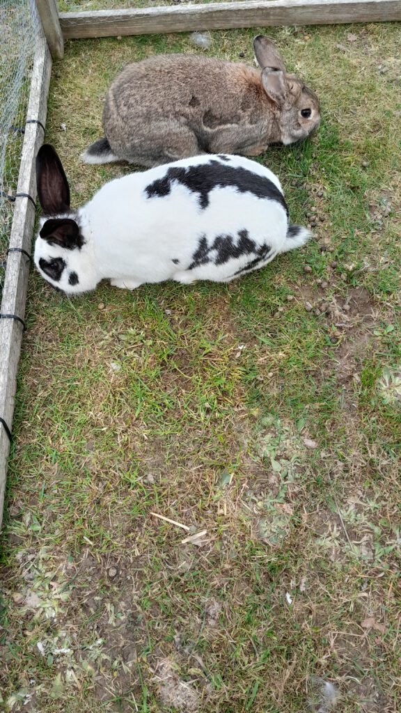 Dann wären da noch unsere zwei Kaninchen: Blacky und Nala, die sich immer über ein paar Leckerbissen freuen.
