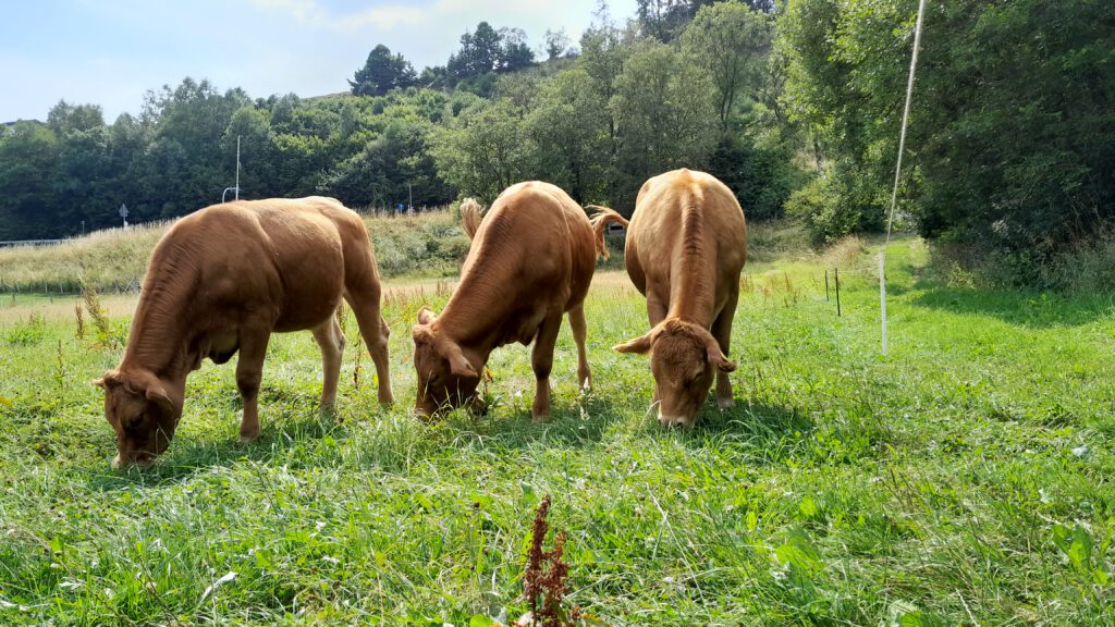 Wir halte eine Mutterkuhherde der Rasse Limousin, die in etwa 20 Tiere unterschiedlichen Alters, sowie unseren Bullen „Willi“ umfasst. Jedes Jahr werden hier mehrere Kälber geboren.